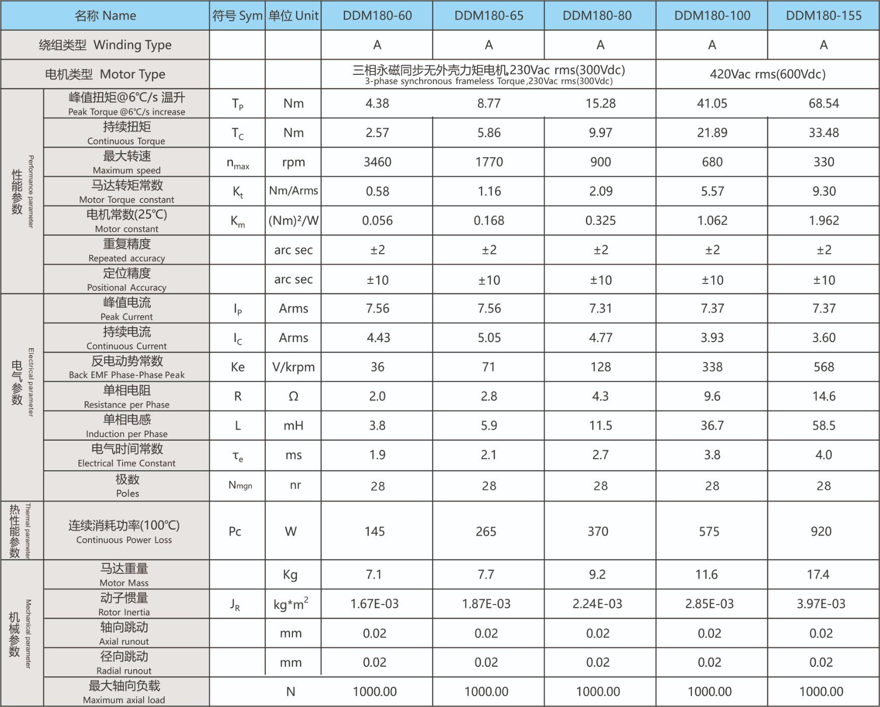 The series includes multiple models such as DDM80, DDM140, DDM180, DDM200, DDM210, DDM260, DDM280, and DDM408 to cover a wide range of torque requirements. For example, the DDM260 sub-series offers continuous torque from 35.00 Nm to 118.00 Nm and peak torque up to 271.00 Nm.